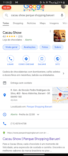 É uma loja boa, principalmente se você já sabe o que você quer, vai, pega, paga e pronto. Agora se for pra ficar procurando, recomendo ir em horários que talvez não esteja tão cheia, considerando que é uma Cacau Show de...