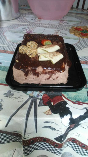 Obs.: o bolo estava quente ainda, o que atrasou mais ainda a festa de aniversário, pois não pudemos cortar o bolo que estava quente e iria dar uma bela dor de...