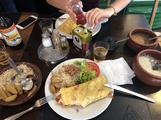 Fomos eu e meu marido almoçar. Como ele é vegetariano, pediu um omelete. O cardápio dizia que todos os pratos vinham com arroz, feijão, farofa e batata rústica. Quando chegaram os pratos, meu marido percebeu que tanto a farofa quanto o feijão tinham bacon (sendo que no cardápio não dizia que tinha bacon em nenhuma das duas guarnições). Na hora de pagar, fomos ao caixa e eu sugeri, muito educadamente, que eles colocassem no cardápio que o feijão e a farofa tinham bacon. A moça que estava no caixa foi simpática e educada e só concordou. Expliquei que meu marido acabou comendo somente o arroz, omelete e as batatas porque é vegetariano, e sugeri, também muito calma e educadamente, que talvez eles poderiam oferecer feijão sem bacon. Um moço de meia idade que estava ao lado dela já foi fazendo não com a cabeça e me respondendo de maneira grosseira que não, que eles não tinham estrutura para isso e que apenas uma vez ao ano alguém vinha reclamar disso. Ele foi muito grosseiro e mal educado na forma como falou. Respondi que só foi uma sugestão e fui embora. Tinha achado o preço dos pratos justo e a comida boa. Voltaria a comer lá. No entanto, depois dessa grosseria deliberada e sem nenhum motivo, não volto e...