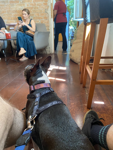 Fomos tomar um café da manhã numa manhã de sábado ensolarada. Ao chegar fomos muito bem recebidos, o serviço lá é muito atencioso e cuidadoso. Escolhemos sentar no quintal porque chegamos cedo. Depois de algum tempo já não tinha mais mesa no quintal disponível. Ambos os ambientes são bonitos, o interno e o quintal. O café tem uma estante com muitos livros, mas tem também um cartaz dizendo para ocupar as mesas somente enquanto estiver consumindo - o que gera uma sensação de que não é lugar para leitura. O cardápio é apenas digital e o site estava péssimo no dia que fomos. Para entender as opções de brunch era necessário criar um login no site. Eu fiz login porque queria entender, mas isso foi um ponto bem negativo. A tostada mineira estava em um dos brunchs mas acabei decidindo não pedir brunch e sim somente a tostada. Contudo, a tostada não estava no cardápio e para saber o preço somente perguntando a garçonete. A fase pré comida foi essa. Ao chegar os nossos pedidos, o café vem em xícara de metal e o ambiente do quintal é bem frio, o café esfriou muito rápido. Pedimos uma porção de ovos mexidos com pão de queijo que também veio em uma cumbuca metálica, que esfriou bem rápido também. Minha sugestão é ter louças de cerâmica de grande espessura para manter o calor da comida por mais tempo. Tivemos um problema com o bolo pedido. A foto do cardápio do bolo de banana avulso e no bolo de um dos combos do brunch era a mesma. Porém, somente ao chegar na mesa soubemos que o bolo avulso tem calda e o do brunch não tem. Tivemos que argumentar até que fosse colocada a calda conforme a foto. O gosto da comida não nos surpreendeu exceto pela farofa de pão de queijo que veio no ovo. Quanto ao preço, estavam um pouco fora comparado com a qualidade. O ambiente é bem bonito e bem interessante para crianças pois é permitido desenhar em uma das paredes com tinta, tinta mesmo, numa parede real! O que torna interessante para crianças experimentarem. Contudo, o estado meio acabado e bucólico não passa tanta higiene. Por exemplo, o ombrelone branco em cima de uma das mesas estava completamente imundo. Por fim, tem opções para vegetarianos no cardápio, mas não avaliamos quanto as...