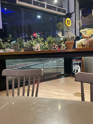 Fui na madruga de sexta(13/10/23) para sábado. Já tinha passado algumas vezes em frente mas dessa vez consegui parar para conhecer. O ambiente é bem legal, junto com a cafeteria funciona a hamburgueria. A vitrine de doces impressiona, tanto pelo visual quanto pelos preços. Vc faz o pedido e paga antes de comer....porém não aceitam cartão de crédito....por sorte eu tinha dinheiro em espécie. Uma vergonha nos dias de hoje um estabelecimento não aceitar cartão de crédito. Pedi um bolo de ganache de chocolate e um café coado da casa no tamanho pequeno. Acho que por não ter disponível no momento a xícara pequena, o atendente me deu o café grande pelo preço da pequena. O bolo, apesar de ser vistoso e com preço atraente, tem uma péssima qualidade. Puro sabor de gordura. A pessoa que colocou o bolo no prato não teve o menor cuidado para servir....enquanto a fatia na vitrine ficava ali exposta em pé com um visual atrativo, na hora de servir estava deitado...coloquei de pé para tirar uma foto e postar aqui....mas o prato já estava todo sujo. O café, apesar de não ser um café especial, estava até gostoso....sem muito amargor. Para comer com a fatia de bolo estava bom, ajudou a disfarçar o sabor de gordura do bolo.