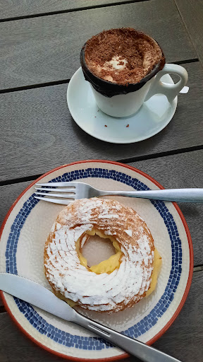 Read moreHoje estive o local acompanhada do meu esposo e do nosso filho que é um bebê de três meses, foi minha segunda visita em um período de sete dias, trouxe meu esposo para conhecer o caffé, moramos muito próximo cerca de duas quadras do local e poderia ser uma excelente opção para nossos cafés da manhã, porém hoje o atendimento foi péssimo. Sentamos em uma mesa por volta de 10h45 como vi que tinha apenas duas atendentes nas mesas falei para meu esposo que iria fazer nosso pedido e já realizar o pagamento no caixa, pois tendo um bebê tão pequeno infelizmente ainda não conseguimos ficar por muito tempo nos locais, ao me dirigir ao caixa para pedir duas tortas o atendente que acredito ser gerente, pois estava com uma camisa Polo branca diferente das outras atendentes não queria marcar meu pedido, disse de maneira ríspida que os pedidos são retirados nas mesas, porém ele havia acabado de anotar um pedido de outro cliente no balcão na minha frente, perguntou gentilmente se ele estava na mesa X com uma moça de preto, o cliente respondeu que sim e cordialmente ele disse que poderia aguardar que levaria o pedido na mesa. Dois tratamentos tão distintos no mesmo local, para mim ele foi enfatico em dizer que o meu pedido entraria na fila como todos os outros, sendo que em nenhum momento eu solicitei prioridade. Ao recebermos o pedido as tortas estavam frias por isso a nota para a comida também foi baixa, e para o ambiente a minha nota foi 4 estrelas por não ter banheiro acessível no caffé, apenas na casa das rosas o que é ruim pois já estive de segunda feira no local com meu bebê no carrinho e as segundas a casa das rosas não abre, impossibilitando o uso do...
