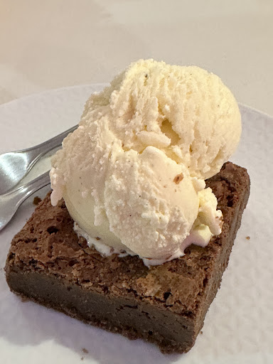 Pedimos 1 bolo gelado dê coco 1 bolo ganache meio amargo 1 brownie de chocolate com sorvete de baunilha