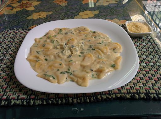In regard to the 'Ravioli with Gorgonzola Cheese Sauce', I would define it as a delicious fork-tender creamy pasta, with an aromatic and a bit tangy sauce, enough to make it melt in the mouth, a tantalizing dish even for the eyes of the other patrons that look at it, and on every Wednesday, this plate is served with a mouth-watering sweet coconut dessert free of charge.