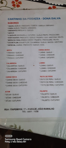 Já comi na dalva desdo começo em que ela começo. Hoje infelizmente sai insatisfeita e chateada, pois pedi uma fogazza de portuguesa que todos sabem que um dos ingredientes é o queijo e não veio nada de queijo veio mais presunto muito presunto fora que veio catupiry sendo que na portuguesa não vem... eu fui reclamar no final na hora de paga pois achei que o queijo ainda iria vir kkk e nada. não me entenderam pelo contrário disseram que eu tinha que mostrar como si eu fosse mentir né pra comer de graça... eu nunca mais...