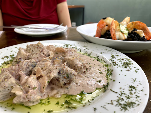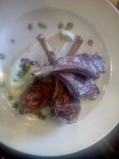 Hoje dia de comer pouco, mas comer bem, uma refeição que realmente vem muito pouco na quantidade, mas a qualidade até que compensa um tanto, o raio gourmetizador passou com força nesse prato. De 'entrada' o sempre bem vindo pãozinho fatiado, sem nada demais, apenas é bem gostoso e cai bem com o azeite da casa, serve um tanto bem pra saborear enquanto o prato não chega. A apresentação do prato já mostra bastante requinte, 4 pedaços de costeleta de cordeiro, bem dispostas acompanhadas por uma pequena porção de purê de couve-flor, aqui disposta de uma forma bem gourmetizada, arrastada no prato, e vários pingados de azeite com ervas, tudo pra deixar o prato bem bonito e chamativo, apesar da pouca comida. O sabor do cordeiro agrada bastante, é uma carne bem tenra e temperada, muito macia e com uma dose de gordura considerável, algo que dá pra saborear muito bem sem problemas, também é uma carne levemente pesada, nem tanto pela gordura, mas também pela sua natureza, o jeito que foi feita também deixa a carne bem suculenta, não deixando ficar em nenhum momento enjoativa. O purê de couve-flor é bem bonito e saboroso, tem um sabor forte e característico do vegetal, além de parecer estar um tanto puxado pro alho, nada muito forçado, algo que realmente serve pra dar sabor, a consistência é boa e de fácil degustação, mesmo aparentando ser pouco, serve bem pra quantidade de carne. A mistura dos purê com o cordeiro realmente torna o prato espetacular, o purê parece ter sido precisamente feito pra carne, que ganha um sabor de uma pasta de alho bem suave e com sabor da couve-flor, que fica perfeitamente bom, a carne fica ainda mais temperada e sem perder seu sabor original, realmente um casamento muito além do esperado. O lugar é uma extensão do Maripili, mas com uma identidade própria, com cardápio diferente, quadros e papel de parece que até lembram o outro lugar, mas de uma forma mas espaçada e elegante. O atendimento é basicamente igual, atendente atenciosos e cortês, só que hoje parece que demoraram um pouco mais pra servir. No geral, um prato muito bonito, muito saboroso e agradável, os sabores individuais ou em conjunto são praticamente perfeitos, difícil de encontrar problemas nesse ponto, algo que incomoda com certeza é a quantidade e o custo, o prato mesmo sendo bem saboroso é um tanto caro para a quantidade.