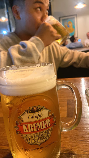 Ficamos no primeiro andar. O lugar tinha um cheiro muito forte de mofo, mas acredito que era por causa do jogo americano que estava nas mesas… dava pra perceber que era bem velho, inclusive, uma das pessoas manchou a mão quando retirou o mesmo da mesa.