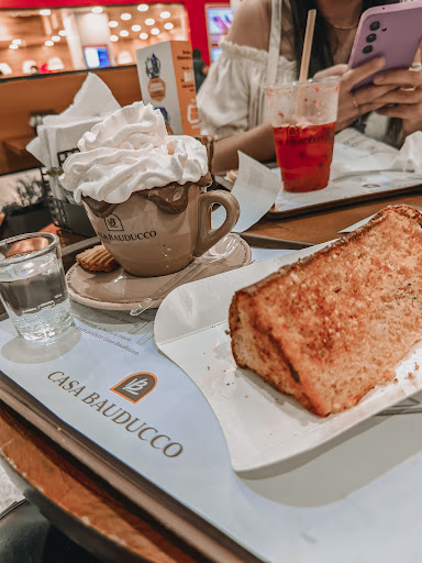Estava ensaiando pra ir experimentar pela primeira vez na vida algo da Casa Bauducco. Ia em outra unidade, mas por coincidência consegui ir na do Metrô Tatuapé. E que surpresa agradável! Bem no cantinho da escada rolante está os assentos (um pouco disputados pois são poucos), mas eu e minhas 2 amigas conseguimos lugar rapidamente. Na nossa mesa havia uma bandeja suja deixada lá, a funcionária não tirou quando eu alertei que estávamos sentando e havia bandeja do cliente anterior, então eu mesma retirei e coloquei na bancada delas, e uma atendente extremamente simpática agradeceu aliviada por esse favor (pessoal, atenção com essa questão, mesmo que teoricamente os funcionários tenham que limpar e retirar, mantenham a organização levando as bandejas até eles, não custa nada e ajuda muito!