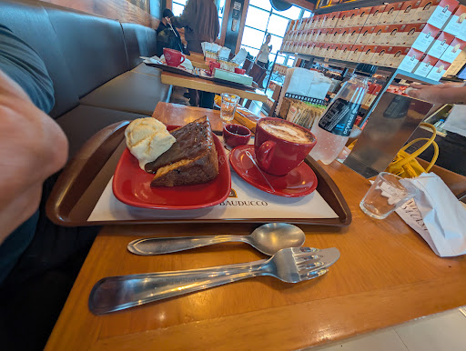 Read moreThis place is my go to place when in GRU. The atmosphere is very southern Italian, coffee is great, the baked stuff wonderful. They specialise in panettone and also have savoury versions, baked with cheese and stuff. The chocolate-orange panettone on my photo is served with caramel ice-cream and a thick salty caramel sauce. Delicious - would have merited 5 stars in a fine dining place, and this is just an airport café. I can see that some people complain about the service, but this place is sometimes VERY crowded and it's an airport, it gets stressful and many guests don't speak the language etc. I think the service is fine for an airport, it has always been quick and correct. But the pace of this place is high and you need to know what you want to order, have your payment ready, watch your table or someone might snatch it, etc. It's an airport, that's not the...
