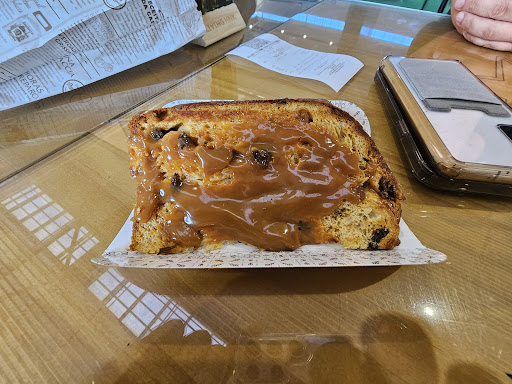 Unfortunately, I did not have a good experience today at this store. Customer service was not good. The servers looked very busy, and as a result, my order was not done with appreciation. I wanted to try the classic panettone with dulce the leche. As there was no sitting available, I ordered "to go." The same person who got my order prepared the slice of panettone. Tong fell on the floor, and the employee returned it to serve the food she was preparing for another customer. Also, I know airport prices are usually expensive, but paying $7.90 for a tablespoon of dulce the leche on top of your panettone is a rip-off. Also, they were careless with takeout containers; they got the first one they saw, and I received a dirty one. You can see the pictures. There was a stain on the base, and one of the sides was dirty with coffee. The product is good, and my main concern is the staff's carelessness. They should be trained according to the company they represent, and those little...