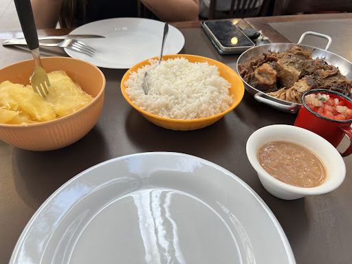 Comida: Galera, sem dúvida descrevo a maravilhosa experiência que tive ao pedir os pratos executivos: costela e cupim. Ambos os pratos acompanham arroz, feijão, mandioca, vinagrete e farofa, somente aqui já valeu a pena ter vindo. Abro um leque para a farofa e vinagre que são bem deliciosas e a mandioca estava desmanchando (pelo menos, eu gosto). Como disse acima, os pratos vem com esses acompanhamentos mais a carne. Tanto a costela quanto o cupim, ambos estavam desmanchando, nem precisa colocar força na faca para cortar, só de mexer com o garfo já desmanchava as carnes. Algo curioso que me impressionou foi o tempero de tudo que estava no ponto certo, com o equilíbrio no sal. Já fui em inúmeras churrascarias, essa casa da costela ganha desses locais em qualidade e tempero.