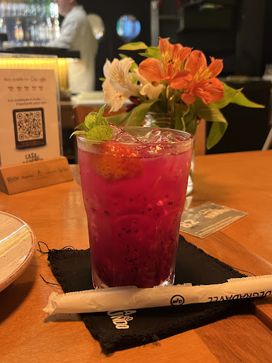 Rubens “o rapaz que fica no bar” faz drinks incríveis, tomei uma caipirinha de pitaya com morango incrível.