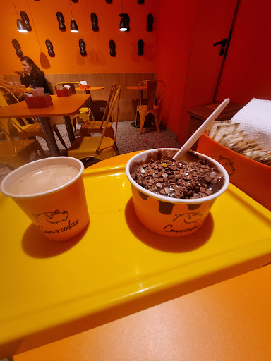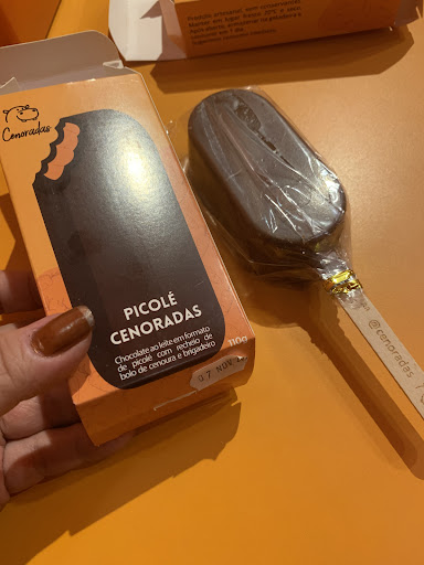 Vou começar falando do ambiente. A parte da frente é uma lojinha de docinhos feitos à base de cenoura. A parte de trás é um lugar pequeno que chega a ser claustrofóbico. Tudo muito laranja, meio sombrio, “frio” e nada aconchegante. Umas pequenas e poucas mesinhas num ambiente sem janelas. Acho que um lugar que se propõe a servir docinhos para serem consumidos no local, deveria apresentar uma vitrine com doces frescos que nos chamasse a atenção, mas tudo o que eles têm, são doces fechados em caixas, apresentados na prateleira. Pegamos um bolo com cobertura cremosa de chocolate, envolto por uma casquinha generosa de chocolate. Isso tudo no formato de um sorvete de palito. Delícia! Realmente o doce é bem gostoso! Não chega a ser melado. Pedimos um pratinho pra podermos comer o docinho, mas não tinham… Fica a dica! É fundamental ter um pratinho pra podermos apoiar o que estamos comendo. Pensamos em pegar um sorvete, mas ao abrirmos a embalagem, vimos que estava empedrado, como se tivesse descongelado e congelado novamente. A proposta é legal, mas pode melhorar muito! A ideia de separar o salão da recepção, não funcionou. Se abrissem os 2 ambientes, não isolando o salão ao fundo, ficaria bem mais agradável. Doces frescos, servidos fora das caixas, fariam uma grande diferença. O ideal é comprar e comer em casa. Os preço são salgados, mas o doce é realmente muito bem feito, gostoso e cremoso. Eu não voltaria pra comer lá, mas com certeza, compraria um doce pra levar pra casa. Não tem estacionamento mas há vagas na rua...