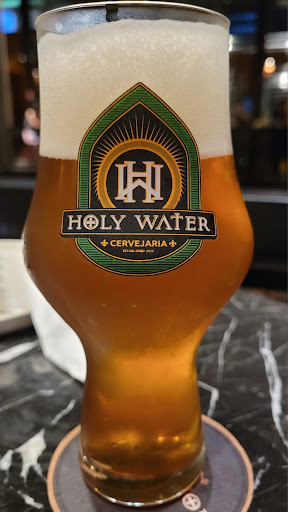 No dia 18 de março fui até São Caetano do Sul – SP para conhecer a Cervejaria Holy Water, sou apreciador de cervejas especiais/artesanais há anos e também trabalho neste incrível ramo, por isso sempre procuro conhecer novas cervejarias por prazer e trabalho. No caso da Cervejaria Holy Water, foi uma experiência desagradável, por um motivo que é importante para mim: sirva ao cliente o que é anunciado. Para começar a experimentar a cerveja da casa, pedi uma Session IPA de 500 ml e já imaginei uma caneca ou copo com uma bela quantidade de cerveja. Para minha surpresa, chegou um copo mediano e ainda não preenchido até a boca, perguntei se aquele era o de 500 ml e o garçom confirmou. Pela minha experiência quando olhei para o copo (mesmo sendo em formato irregular) percebi que ali não tinha 500ml de líquido, não falei nada, tirei uma foto (que está postada neste comentário) e tomei mesmo assim. Logo em seguida, pedi uma garrafa de água para ter uma referência para poder argumentar com o garçom. Ele me trouxe uma garrafa de água de 350 ml que usei no mesmo copo que veio a cerveja de “500 ml”. A água preencheu praticamente até o mesmo nível que veio a cerveja (através do logo no copo dá pra ter esse parâmetro, foto postada neste comentário), ou seja, 350 ml. Chamei o garçom e expliquei pra ele mostrando a foto que tirei antes do copo de cerveja como chegou à mesa, então ele usou um argumento que em nada explicava não ter vindo a quantidade, disse que a espuma da cerveja artesanal é mais densa e tem bastante... mas, o que isso tem em relação com a quantidade de liquido que deveria ter? Mostrei novamente a foto e comentei que não era sobre a espuma, que é necessária, a questão era sobre a quantidade de liquido que era igual da água (350 ml) a espuma não entra na quantidade. Nesse momento ele parou por um instante e perguntou se eu queria que trouxesse a diferença, disse que não precisava. Mas foi praticamente um reconhecimento de que não veio a quantidade anunciada. Não é só sobre os 150 ml e sim a sensação de não ter o que estava comprando. Achei isso uma situação muito chata e desagradável. Segue fotos que fiz do copo como servido a mesa e com a água que usei para referência. Não fui embora pois logo em seguida chegou uma convidada com quem tinha marcado e não achei elegante dar ao trabalho para ela de irmos a outro lugar, mas depois disso, só pedi os copos de 300 ml, o que pareciam vir com a quantidade que realmente é descrita no cardápio. O lugar é bonito, não tem como negar, bom para fotos. Cerveja com alguns...