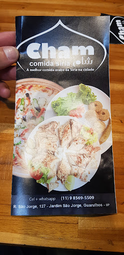 Sem sombra de dúvida, a melhor comida árabe que já comi no Brasil. Feita com amor e carinho, do jeito que deve ser. Esqueça os restaurantes caros e armadilhas pra turista. O Cham é diferente! Falafel sequinho, crocante por fora e macio por dentro, temperado perfeitamente, muito balanceado. As pastinhas (babaganoush, coalhada e homus) são PERFEITAS! O babaganoush tem um defumado intenso, diferente de tudo que já experimentei. Achei excelente! O pão é um tópico à parte… uma folha grande, mas macia e leve, assada na hora. Chega na mesa soltando fumaça ❤️❤️❤️ As esfihas de coalhada e de pimentão são pra comer de joelhos. E a limonada (batida com a casca do limão junto) é perfeita. Nem sinal do amargor de fundo que na maioria dos lugares se sente. Os outros estabelecimentos de Guarulhos (uma cidade com gastronomia péssima) deveriam aprender com o senhor Oussama como fazer comida boa, a preços justos, ter respeito pelo cliente e amor por aquilo que faz. Voltarei muitas e...
