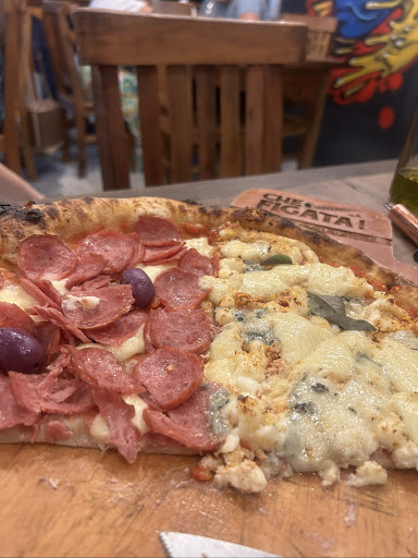 Fomos recomendados por ser uma pizzaria artesanal. O ambiente é ok, criativo.