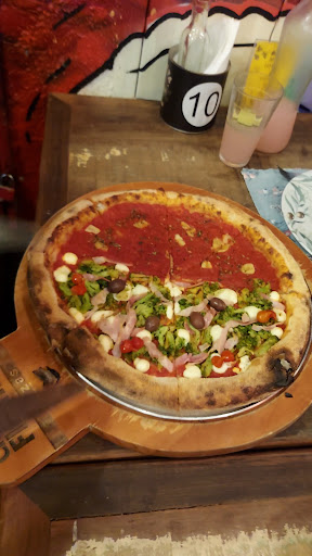 Read moreSou vizinha da pizzaria, e estava querendo ir faz tempo. Fui na quinta feira passada com o meu filho, antes eu olhei no Google o horário de funcionamento, por que meu filho iria trabalhar até mais tarde. Chegamos por volta de 22:15, e a moça que estava na entrada, foi totalmente despreparada na nossa recepção, primeiro que a primeira coisa que ela falou foi: " Que susto" e não " Boa noite", e depois de nos acomodar na mesa, sem tato nenhum, veio logo dizendo que a cozinha fecha às 22:30. Na hora, fiquei tão constrangida da forma que ela falou, que a minha primeira reação foi querer ir embora. Mas depois logo em seguida, veio um outro rapaz até a nossa mesa, e perguntei a ele qual era o horário de funcionamento da casa, pq no Google está até às 23:00, e ele disse que era isso mesmo, e que a cozinha fica disponível para pedidos até às 22:45. Relatei para ele o que a outra moça disse, porque fiquei constrangida e pressionada para fazer o pedido, e que minha vontade era ir embora, mas ele ressaltou que era até às 22:45. Fizemos o nosso pedido, a pizza é realmente um espetáculo, superou as minhas expectativas e do meu filho. Saímos de lá pontualmente às 23:00. A experiência não foi 100%, devido a péssima abordagem inicial, porque me fez sentir indesejada...