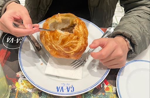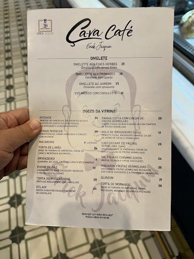 Comentar sobre gastronomia em estabelecimento comandado por lenda francesa em terras brasilis? É de dar frio na barriga, amigo(a). Bora! Courage! Numa segunda-feira de eventos inusitados, estava atrás de um local para comer ovos Benedict. Após caminhada e decepção, aferi a porta fechada por conta de um empreendimento imobiliário. Do outro lado da rua, avistei o Ça-Va Café de portas abertas. Voilà! Amo mudanças de rota - ainda mais com happy end (spoiler alert hehe). Um ar europeu no ambiente. Paredes verdes com detalhes azuis em tons pronunciados contrastando com piso de revestimento preto e branco geométrico. Elegantemente básico. É no olhar eletrônico que se revela uma sofisticação calculada. Cozinha aberta, agitada pelo staff e glamourosa; adega vigiada por enormes garrafas de Veuve Clicquot; bar equipado por bebidas de referência e copos descansando placidamente para o próximo serviço. Mesas de mármore branco redondas de dois lugares cada e cadeiras acolchoadas com padronagem vermelha e branca. Um recanto para esquecer o agito lá fora e mergulhar num oásis de acolhimento. Não resisto e vou direto para a vitrine. Um esplendor da melhor pastisserie: folhados, macarons, baguetes e doces. De olhos bem alimentados, fui de Omelete Aux Fines Herbes (omelete com ervas finas) e um café espresso (R$ 8,90). Magnifique! A melhor que já comi na vida. Leve e delicada. Cremosa e macia no corte. Tempero perfeitamente balanceado; dava para sentir uns grãos minúsculos de pimenta e absorver os aromas herbáceos. Tamanho médio/grande (R$ 25). De acompanhamento, mix de folhas com molho (não consegui descobrir qual) e duas fatias de pão torrado. Todos saborosamente deliciosos. Foi um desjejum merecedor de um desfrute especial e 100% da minha atenção. A cada garfada, um suspiro, uma apreciação no céu da boca, um degustar com olhos no teto. Aproveitando cada instante daquele manjar amarelinho. Café com grãos 3 Corações tirado exemplarmente e acompanhamento de um petit chocolat de mix de nuts - bomba gustativa! Pequeno e poderoso! Já caminhando pela rua... Bang! Mordi um microgrão de pimenta do reino. Para mim, um sinal da gastronomia precisa, apaixonada e inesquecível. Merci, monsieur Jacquin. PS: Retornarei para experimentar outros itens da vitrine, como o lindíssimo choux...
