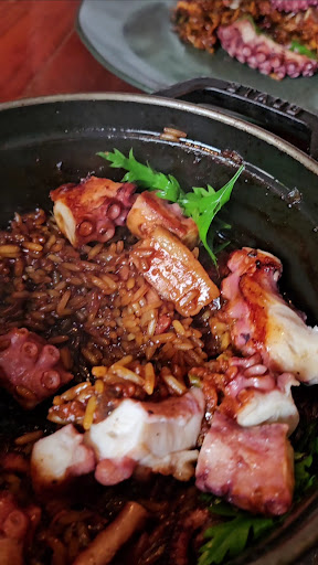 Meu marido pediu o incrível arroz de polvo, muito potente e delicioso, com boa quantidade de polvo na panelinha, em uma proporção ótima em relação ao arroz.