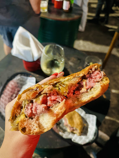 Read moreChegamos por volta das 20h e, como já era de se esperar, o lugar estava bombando. Estacionamos na rua mesmo (nada glamouroso, mas faz parte do charme da missão). Com um pouco de pressa, optamos por não entrar na fila de espera e fomos direto no improviso: pedimos ali mesmo, na entrada, em pé nos tambores sob ombrelones. Sinceramente? Achei o mood bem Buenos Aires roots.