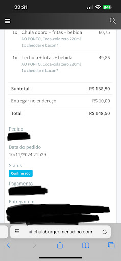 Hamburgueria excelente, porém as minhas últimas experiências foram péssimas! Além atraso de mais de 40 minutos que ocorreu mais de 2x, os meus pedidos tbm vieram com itens faltando… Em uma primeira experiência, ao tentar contatar o restaurante, fui ignorada pelo WhatsApp e ligação, apenas consegui ser atendida quando meu marido entrou em contato por outro telefone, ainda assim ao enviarem os itens faltantes, novamente tivemos a infelicidade de alguns itens não terem sido enviados, além da demora de quase 1 hora para resolver o problema. Agora em 10/11/2024, em uma segunda experiência, outra vez o combo (hambúrguer, batata frita com cheddar e bacon e o refrigerante + nuggets), veio errado, refrigerante diferente do escolhido e as batatas simplesmente não vieram! Ao entrar em contato com o restaurante, optei pelo reembolso, pois a entrega iria demorar e o pedido já havia atrasado quase 1h, conclusão: pedido veio capenga/ errado, reembolso não realizado e nenhuma satisfação do Chula Burguer, essa é a experiência que os clientes...