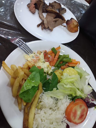 Read moreA loja fica bem localizada,ela possui três vagas para carro em frente a loja. O atendimento é bom. Existem dois rodízios,pela manhã é o de carne,a noite é o de pizza. Se você quiser pode optar apenas pelo self-service,sem o rodízio de carne que é mais barato. O buffet tem uma variedade legal, alimentos bem frescos,bem preparados,conta saladas e frutas. Existem também a possibilidade de comprar Marmitex que podem ser retirados no local ou entregues. Possui banheiros, não tem fraldário. Tem um bar. Pagamento aceitos: cartões de crédito/débito,Vale Refeição, dinheiro e Qr-code. O gasto por pessoa com o rodízio é de 60,00,sem o rodízio é mais barato algo entorno de 40,00. Não tem espaço para crianças,fácil acesso para cadeirantes, não ha rodízio...