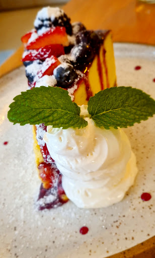 Entre os doces, a tarta de queso apresenta massa cremosa e densa e sabor lácteo equilibrado pela acidez da calda de frutas vermelhas. A torrija combina brioche úmido e frito, toque de canela e sorvete de canela com caramelo salgado, resultando em contraste de texturas: crocante, macio e cremoso, com dulçor equilibrado.