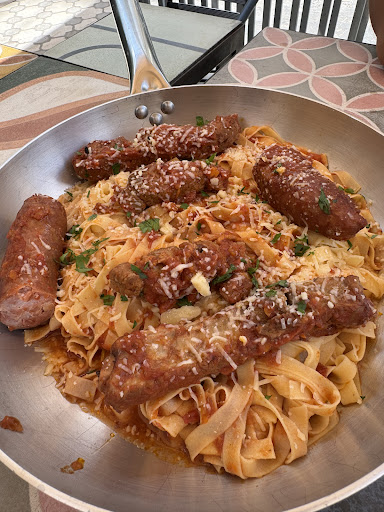 A massa é artesanal, os produtos são importados da Itália, a comida é maravilhosa e o preço é muito bom, ainda mais pela qualidade. Pedimos 2 massas que não estavam no cardápio: namorado pediu um espaguete à Matriciana, e eu pedi um fettuccine com burrata e tomate cereja, ambos incríveis! 🤤 Ah, e não posso deixar de falar do crostini com mortadela italiana de entrada...socorro, nunca comi uma mortadela tão maravilhosa na vida! 😱 É muito leve e diferente do que estamos acostumados a comer aqui! Pra acompanhar, um drink da casa que a gente adora: Spritz Crostini, feito com prosecco, água com gás, limão siciliano, hortelã e Limoncello feito em casa (que a gente ama e trouxe pra casa) 🍹 Pra fechar com chave de ouro, só pedindo o tiramisu, que é tão gostoso que, até a gente que nem é tão fã da sobremesa, não deixa de pedir! 😋 Ah, e você ainda recebe Limoncello de cortesia (perfeito, por sinal!) ❤️