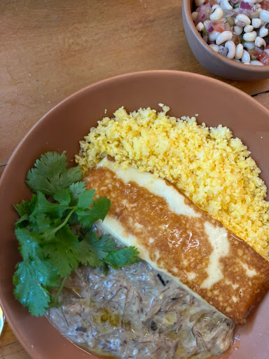 Agora sobre a comida, que é o que importa, eu não sei nem o que falar de tamanha decepção. Gente. Xoxa, capenga, e anêmica. Não tinha sal. Não tinha pimenta. Não tinha tempero. A manteiga de garrafa que me prometeram deve ter ficado dentro da garrafa, porque no meu prato não estava. Parecia comida de hospital. Cada um de nós pediu um prato diferente de cuscuz, e a única coisa que salvou ali foi a carne seca cremosa de um deles. O meu, que era um de peixe, não tinha gosto nenhum. Sem falar que que os pratos demoraram quase 1h pra chegar, o que não seria um ponto que eu iria exaltar aqui se a comida tivesse chegado quente. Mas não, chegou tudo frio, o que me levou a pensar que os insumos já estavam preparados e só foram colocados no prato.