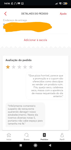 Read morePela terceira vez, a pizza chegou fora do horário estipulado e morna. Perderam mais um cliente .