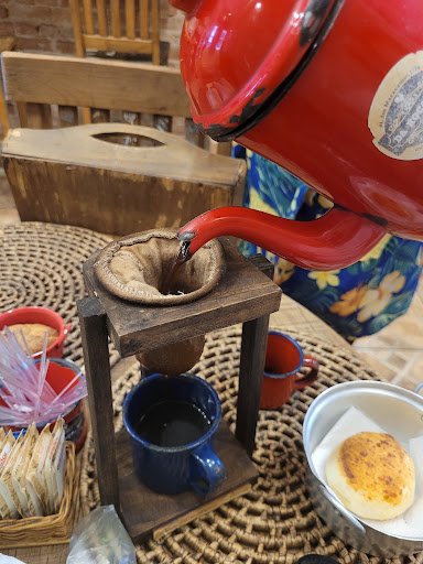O café ☕️ coado no pano é muito ruim e parece tinta preta, de tão forte.