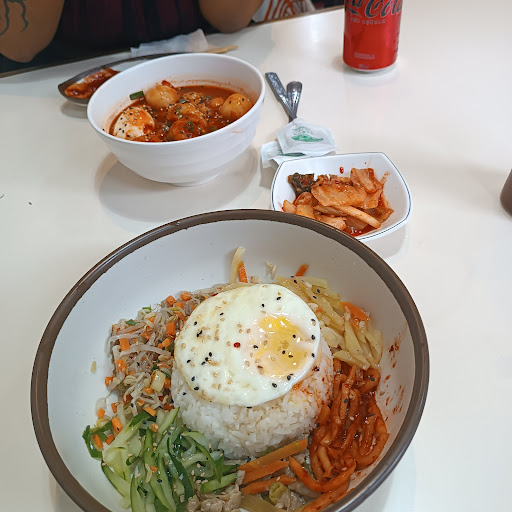 Read moreA comida foi boa, mas por causa do serviço eu não volto mais e não recomendo. Chegamos e estava lotado, então entrei e perguntei se precisava colocar o nome na lista, a moça me disse que sim e que ia demorar, mas isso tudo bem, até que não demorou muito. Aí chamaram a gente e mostraram a nossa mesa, mas não fizeram questão de explicar nada sobre o funcionamento do restaurante. Até eu descobrir sozinha que o cardápio e o pedido eram feitos digitalmente, fiquei um tempão esperando alguém vir me atender. Aí, antes de fazer o meu pedido (de frango) eu perguntei para um dos atendentes se eles vendiam porção de arroz separamente, ele me disse que sim e me disse onde encontrar lá no cardápio. Aí eu pedi o frango SOMENTE porque era possível pedir o arroz junto e meu marido pediu bibimbap. Depois de muita demora, o prato dele chegou, mas não o meu. Ele terminou de comer e nada do frango e do arroz. Tentaram entregar na nossa mesa um pedido que não era o nosso. A bebida que pedi saiu rodando o restaurante todo até acharem a minha mesa. Aí finalmente chegou o frango, mas estava sem o arroz, falei isso para uma moça e sem conferir nem nada ela só disse "já está vindo". Pois bem, terminei de comer o frango que havia pedido apenas se tivesse arroz junto e o arroz não veio. Acho inacreditável não ter arroz pronto em um restaurante coreano, então foi falta de preparo e organização dos atendentes que estavam super perdidos no meio de seu bate-papo. Além disso tudo, eu achei o restaurante muito sujo. Entregaram pra gente louça molhada, luvas de plástico molhadas também. Uma das atendentes estava com metade do cabelo pra fora da rede protetora, acho que ela não entendeu que o objetivo é ficar com o cabelo pra dentro. Viemos de outro estado pra comer comida coreana em São Paulo, e, se eu não tivesse dado a chance para outro restaurante depois deste, eu teria ido embora com uma péssima impressão. Pela fila que estava do lado de fora quando nós saímos, penso que seja um restaurante popular, mas precisa melhorar muito...