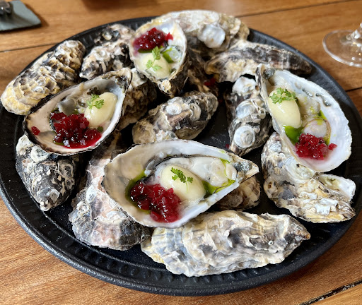 As ostras parecem estar sendo comidas ali na beira da praia, com o gelado do sorbet de caju potencializando a sensação de frescor e com a acidez da fruta ao lado da acidez da cebola roxa trazendo limpeza e clareza ao paladar. Ótimo!