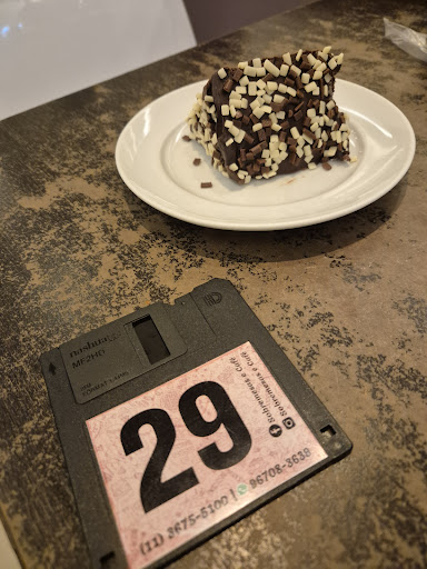 Detalhe curioso para a "domanda" que sao disquetes, muito legal.
