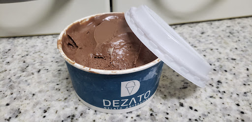 Procurando uma sorveteria próxima achei a Dezato com ótimas avaliações. Estacionar não é uma tarefa fácil, mas sempre damos algum jeito quando nos deparamos com algo bem avaliado. Comprei um sorvete de chocolate Belga, meu marido pediu o de pistache com flor di latti (algo assim) e morango. No geral, bom, mas não ótimo. Tem algo na composição que deixa o sorvete muito cremoso, mas com um gosto residual. Somente percebe quem está acostumada com produtos bem feitos. Enfim, não é o melhor sorvete que já experimentei nem de longe, mas se em um dia não tiver uma opção melhor próxima a você, diria que pode ser para "quebrar o ganho". Os sabores que experimentamos não eram enjoados, exceto o de morango que era bemmmm doce. No geral vale a pena, mas não é inesquecível. Se fosse eu, faria um ajuste na receita para tirar a textura de "cremoso elástico", porque esse tipo de textura parece tirar um pouco do frescor e dar um ar...