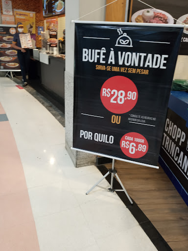 Read moreFUJAM ! Na entrada do restaurante tem uma placa enorme oferecendo "servir-se a vontade apenas 1 vez por 39,90" só que existem 2 pilhas de pratos, sendo uma p/ esse valor anunciado , e outra "por kilo", e é aí que está o golpe ! O valor da refeição por kilo, não está exposto c/ a placa do "a vontade" ! Estava c/ minha mãe idosa, que eu fiz um prato extremamente modesto (em quantidade) Basicamente folhas e um filé de frango, e p/ mim pouca coisa a mais que o dela. Qual não foi a minha surpresa, que mesmo sem pedirmos bebidas, esses 2 pratos extremamente modestos custaram a bagatela de R$ 110,00 !!!!!! Fiquei completamente surpreso c/ esse valor, sendo que no mesmo local existem vários lugares p/ refeição, inclusive churrascaria, que se eu tivesse ido, não gastaria esse valor ! Uma tremenda armadilha p/ os consumidores ! Foi uma péssima experiência ! Eu nunca mais volto nesse lugar, e sempre vou recomendar aos amigos ...