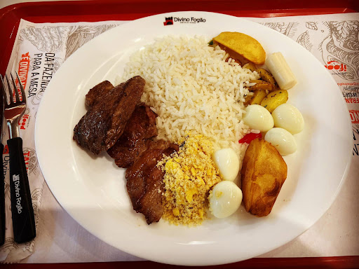 Read moreDependendo do horário, você encontrará uma excelente refeição ou uma não tão boa no Divino Fogão. Explico. Em 07/4/2022 à noite, de duas fatias de alcatra, uma estava dura e outra um pouco melhor. Ambas, todavia, pareceram-me requentadas, não frescas. O nhoque, face ao molho, estava muito bom. Em 13/2/2024, muito tempo depois, me servi basicamente de uma fatia de frango à parmegiana e de uma fatia de alcatra. Também salada de maionese, polenta, aipim e um bolinho de arroz. Excelentes as proteínas de frango e bife. A carne, suculenta, ao ponto, temperatura adequada. E o frango à parmegiana muito bom. Não gostei do bolinho. Vá, portanto, para almoço, não para o jantar. Na visita de 07/04/2022 paguei R$ 43,55. Na última, R$ 55,55. O valor do quilo aumentou bastante. De R$ 79,80, já está próximo...