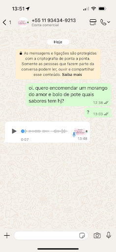 Primeiro fomos almoçar na casa da minha sogra que mora perto da loja, passamos e pegamos 3 bolos de pote que disseram ser de brigadeiro, mas na hora de comer, era de NINHO com brigadeiro, eu e meu marido não comemos bolo de leite ninho, então jogamos o bolo fora e decidimos relevar, pois era o primeiro erro delas com a gente. Porém, devido a demora no atendimento paramos de comprar por um tempo. Veio a febre do morango do amor, então eu encomendei 3, fiz o pagamento e aguardei elas liberarem para que eu chamasse o Uber moto para retirar, o que não ocorreu. Depois de mais de uma hora sem retorno, ligamos lá para que fosse realizado o reembolso.