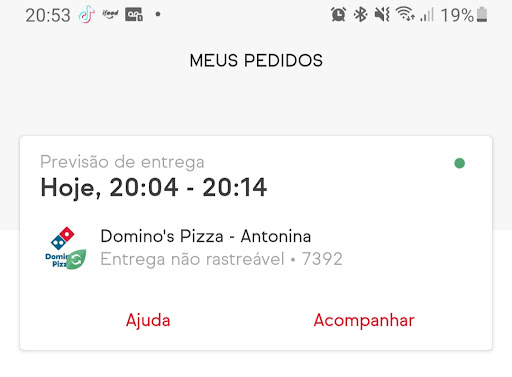 Pedi uma pizza sábado às 19h15 pelo iFood, 21h07 e a pizza ainda não chegou. Tentei entrar em contato com o estabelecimento que ignorou todas as tentativas de contato pelo aplicativo.