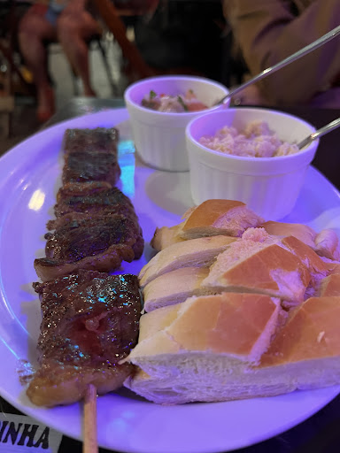 Read moreExperiência péssima! NÃO RECOMENDO ESTE LUGAR PARA NINGUÉM! Estive ontem no bar, com dois amigos gringos para assistir à estreia do Brasil na Copa do Mundo. Foi cobrado o valor de 100,00 por pessoa apenas pra entrar. Ao solicitar o cardápio vi que haviam poucas opções de comida (petiscos). Como estávamos em 3 pessoas, perguntei ao garçom qual seria o melhor petisco para 3 pessoas. E eles disse que a poção de filé mignon era para até 4 pessoas (GUARDEM ISSO… 4 pessoas). Pois bem, ao chegar a tal porção, foi decepcionante pois no prato não tinha nem 100g de carne picada. A foto abaixo comprova isto! Fiquei morta de vergonha perante aos meus amigos. Pois eles me questionaram o que era aquilo e nem eu soube explicar. Questionei o garçom e ele ficou desconfortável com a minha reclamação e disse que eu poderia devolver. A questão não era devolver e sim, levar o prato de trazer uma porção de verdade! Achei muito desonesto mesmo! A porção custou 70,00 reais mas não valia nem 10,00. Outra observação… no cardápio dizia que acompanhava um molho de catupiry. E não era molho. Era um caldo, ralo igual leite com gosto de leite puro! VERGONHA! Tive a sensação de que o que vocês perderam na Pandemia, vocês querem recuperar agora na Copa, com valores absurdamente alto e 0 qualidade. Problema nenhum pagar, 100,00 em uma porção, desde que está seja equivalente ao preço. Enfim, não gostei do lugar, do atendimento e...