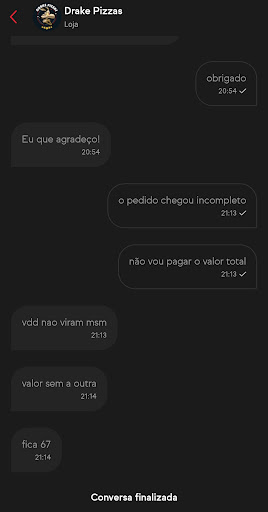 Read morePior pizzaria do mundo!!! Pedi uma pizza as 21:32 pelo app do Ifood e não entregaram. Liguei 2x na pizzaria: a primeira me disseram que a demora era pq o movimento estava muito grande mas que o entregador já estava a caminho, inclusive que ele estava com mais 3 entregas e que por isso pediria para o entregador cortar caminho e vir me entregar logo, o que não aconteceu; A 2ª foi quando deu 2h de atraso, onde eu pedi para cancelar meu pedido e me ressarcir o valor via pix tb, pois foi dessa forma que paguei, e o atendente disse que não me ajudaria pq isso era com o dono e que ele não poderia fazer nada. Aí quando eu comecei a rebater sobre o cancelamento, ele disse que o entregador já estava chegando e que portanto era pra eu simplesmente esperar, e quando eu afirmei que não queria mais de jeito nenhum, ele mudou o discurso dizendo que me enviou mensagem via app do ifood me avisando que o entregador já havia chegado, o que é mentira afinal eu estava sentada no meu portão desde a 1ª ligação para eles, esperando o entregador. E quando eu afirmei que era mentira, ele disse que eu era a mentirosa e não ele e que não ia discutir comigo, aí desligou o telefone na minha cara e bloqueou meu número na sequência. Por isso, tentei o cancelamento do pedido via app e ele recusou o meu pedido de cancelamento. E detalhe: Eu moro a 3 minutos de distância da pizzaria (de moto) o que não justifica o tempo maior que 30 minutos da 1ª para a 2ª ligação. E ele mentiu tb quando disse que havia me enviado mensagens dizendo sobre a chegada do entregador, pois não recebi mensagem nenhuma. Aliás, nem viram minhas mensagens no chat deles.... Ou seja? Paguei caro por uma coisa que nunca vieram entregar, fui totalmente destratada e chamada de mentirosa por um lixo de ser humano que se diz atendente e ele ainda recusou o cancelamento do meu pedido no app do ifood!!!! ENFIM... NÃO RECOMENDO ESSA PIZZARIA...