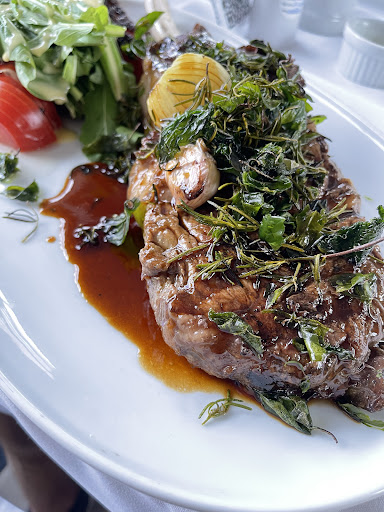 Pedi um Steak Tartare que estava no cardápio como „Entrada“, mas é bem servido e tranquilamente me atendeu como prato „Principal“. A quantidade foi adequada. O prato é servido com salada, torradinhas e batata chips que estavam ótimos, mas penso que o Steak Tartare pede fritas. Fica a sugestão. Meu marido pediu Costeleta de Cordeiro e disse que estava excelente. Como sobremesa provamos o profiteroles servido com sorvete. Pra ser honesta esperava mais. Achei ok, porém nada memorável. Café estava ótimo servido com petit fours também é muito bem-vindo.