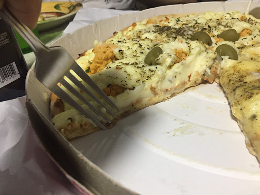 Ao chegar, confirmamos o óbvio, era A MESMA PIZZA FRIA, estava com as bordas duras e o queijo já estava com aquele aspecto borrachudo.