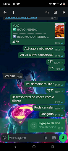 Ao abrir o pedido, ele estava errado, ao entrar em contato com o "restaurante", que por sinal, possui um péssimo atendimento, foi me dito que haviam me enviado um pedido diferente, pois o que solicitei não estava mais disponível, e que por diversas vezes tentaram o contato comigo e não conseguiram, porém não recebi nenhuma chamada e muito menos contato via chat do Ifood.