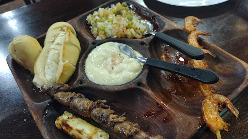 Primeiramente, ressalto que os garçons foram sempre solícitos e não têm culpa dos problemas enfrentados. O verdadeiro problema está na gestão, que demonstrou total despreparo. Ontem estávamos em um grupo de 13 pessoas e pedimos o rodízio. Porém, tivemos que esperar cerca de 35 minutos para que começassem a servir os espetos, e, quando chegaram, estavam frios e, em alguns casos, crus. Em momento algum fomos informados que, caso houvesse "desperdício" de espetos, seria cobrada uma taxa extra. Além disso, essa informação não estava sinalizada em nenhum lugar do ambiente. A situação foi agravada pelo atendimento da responsável pelo estabelecimento. A dona do local foi inconveniente, mal-educada e completamente desrespeitosa. Quando fui realizar o pagamento com o cartão refeição, fui surpreendida com a informação de que só era aceito até as 22h – algo que também não estava visivelmente sinalizado para os clientes. No cardápio consta que o cartão não é aceito, mas o estabelecimento utiliza a maquininha de uma padaria, o que deixa tudo ainda mais confuso. Ao questionar sobre essas situações, a responsável foi grosseira, debochada e nos tratou com total descaso. Tivemos que lidar com a total falta de preparo e educação no atendimento.