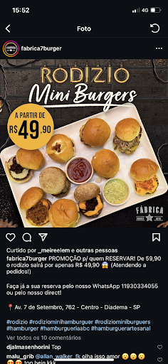 Read moreMinha experiência foi muito boa bom atendimento o cardápio maravilhoso a montagem da mesa um espetáculo tudo servido em uns pequenos espaços de tempo ..... Recomendo a todas as famílias amigos e parentes todos que vê essa postagem ó recomendo melhor lugar da região de Diadema para você vir ficar à vontade no ambiente muito bom muito agradável bom atendimento pessoal muito prestativo é muito bom e agradável....obs:: só alguns pequenos detalhes que me chamou atenção para alguma mudança no estabelecimento a cestinhas que foi apresentado os alimentos não me agradou e nem a colher que foi para tomar o sorvete isso poderia ser mudado e no lugar da colher de cabo de madeira podia ser uma colher de para sorvete e no lugar da cestinha que veio as batatas frita e o hambúrguer poderia vir pequena uma tábua de madeira para enriquecer mais o apresentação do prato ou do hambúrguer .... Ah esqueci de mencionar foi servido um copo na mesa a gente não se agradou pedimos uma taça é rapidamente fomos atendidos e vieram duas taças ficou maravilhoso eu vou mandar a foto para vocês para vocês verem... Parabéns Fabrica 7 vocês estão de parabéns continue assim que vocês têm...