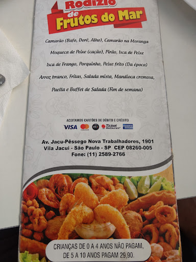 Read moreA experiência foi única, é um restaurante que vc só vai uma vez pq quando conhece não volta mais, não tem nada no rodízio que vc come e diga nossa que delícia, muito fraco camarão na moranga sem gosto, pirão parece uma cola caseira, a isca de peixe veio só gordura com gosto de óleo velho, deixou muito a desejar mesmo, é uma pena pq os garçons são simpáticos, mais a comida não vale o valor que se paga, tinha outros clientes reclamando e falei para o gerente tudo isso que estou relatando aqui, e ele só arrumou desculpas esfarrapadas sem lógicas para defender uma comida sem sabor e sem graça. Ah e não serve tudo o que está escrito no cardápio de rodízio. Vc paga o valor inteiro do rodízio e eles não servem. A batata frita veio gelada e na porta diz que serve uma mandioca cremosa frita e que veio dura. Totalmente...