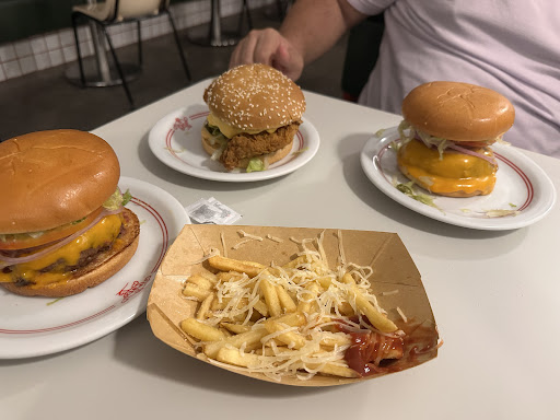 Read moreFui com a minha namorada no último sábado dia 24 de março. Pedimos dois lanches, uma batata, duas maioneses, dois donuts e dois refrescos. Os refrescos: deliciosos e muito bem preparados. As maioneses: gostosas, porém pedimos duas diferentes e quando nos foi entregue vieram trocadas, o atendente não sabia dizer direito qual era qual, foi meio confuso. Lanches: o meu lanche estava ótimo, porém o da minha namorada veio seco e frio. Não tinha uma gota de maionese no lanche, o que até pensamos ser um erro. Como tínhamos compromisso, não reclamamos de nada na hora para não nos atrasarmos, mas é bem chato ir comer em casal e um lanche vir frio. E realmente estava FRIO, o queijo nem estava mais mole, foi bem desagradável. Porção de batata: um bom tamanho para dividir dependendo da fome. 2 donuts para viagem: muito gostosos, nada oleosos e bem recheados. Porém, acho que o ponto mais negativo foi o ambiente. No mesmo dia, uma equipe de filmagem, aparentemente contratada pelo local, estava tirando fotos e filmando. Mas um restaurante, mais do que comida, tem que oferecer um espaço gostoso para comer também, o que não aconteceu. O espaço é pequeno e essa equipe tinha mais de 5 jovens, que falavam alto, passavam com equipamento, luz de filmagem apontada para cara das pessoas, foi muito chato. Precisa filmar e fazer propaganda? Por que então não marcar em um dia que o restaurante está fechado? Marcar filmagem com gente comendo lá, falação alta, luz na cara.. não foi legal. A atendente chegou a perceber nosso desconforto e até ela pediu desculpa...