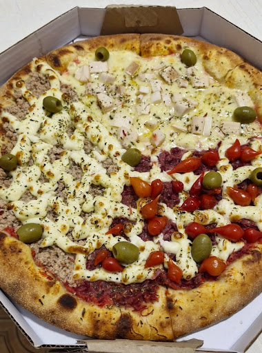 Pontos positivos: Pizza com sabor delicioso pedimos três sabores na mesma pizza (é possível pedir até quatro sabores na pizza). Atum n°2 (Atum com catupiry). Nordestina (Carne seca, pimenta biquinho e Catupiry ). Palmito n°3 Palmito com mussarela. A massa é fina e macia e o recheio bem caprichado.