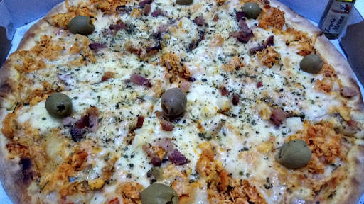 Hoje dia de saborear mais uma pizza, e é uma pizza gourmet ou especial como dia a pizzaria, tudo bem gostoso, por um bom preço, mas dizer que é gourmet ou especial foi um pouco de exagero para uma pizza um tanto normal, apesar de muito bem-feita. A apresentação da pizza parece bem simples, apesar de ter um bom número de ingredientes e até mesmo parecer pesada, o visual parece mostrar pouco, até mesmo pareceu dar a impressão de ser menor que uma pizza comum. Algo bem interessante e incomum foi vir com um pequeno frasco com azeite. No sabor a pizza mostra muito bem que se trata de algo muito bem feitos, com bastante recheio e que dá um pelo peso para uma refeição, tudo o que realmente uma boa pizza pode trazer. O principal sabor fica para o frango, que tem um bom sabor, é bem moído e temperado, e apesar de em algumas partes parecer seco no visual, mas se mostra bem o contrário, tanto queijo, quanto o palmito deixa o frango úmido no ponto, o que garante uma ótima experiência, além de vir numa quantidade bem generosa e bem distribuído. A mussarela é 'o queijo da pizza', é bem distribuído, apesar de faltar um pouco nas bordas, tem um sabor bem e sem exageros, não é algo forte ou que tome o sabor do frango ou dos outros ingredientes demais. O palmito e o bacon passam bastante como coadjuvantes, podem ser sentidos muito levemente e em alguns momentos (principalmente pero das bordas), que parece faltar um pouco, parecem mais um tempero ou algo só para dar um gostinho a mais do que realmente fazer a diferença. A massa é fina e pareceu bem compacta, o que não atrapalha a experiência com o recheio, mas na borda percebe-se que ela é um tanto pesada e levemente seca. No geral, uma pizza que tem bons sabores, principalmente na combinação de frango com mussarela, tudo parece bem feito e agrada como um todo, mas não dá para dizer que é uma pizza especial, mesmo com a combinação interessante, tudo é bem simples, recomendado para que não se importar em gastar um pouco a mais por algo um tanto comum.